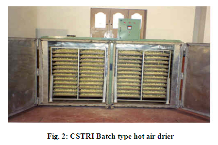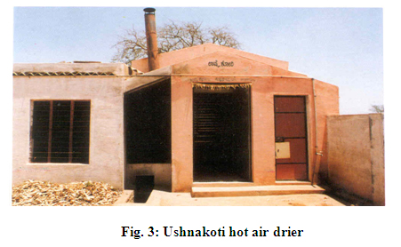 Cocoons should be hot air dried to the optimum level to achieve better quality silk.  This method achieves the major objective of hardening the sericin uniformly in all the layers of cocoon shell apart from killing pupa and removing the moisture.  Hot air drying can be done by batch type hot air driers or in Ushnakoti.