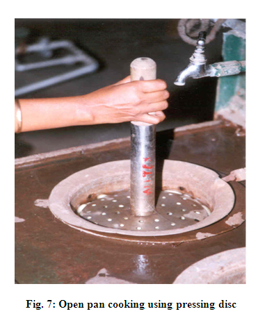 In order to improve the cooking efficiency of the cocoons in open pan method of cooking, a small gadget namely the pressing disc has been developed by CSTRI and recommended (Fig. 7). The methodology followed is: